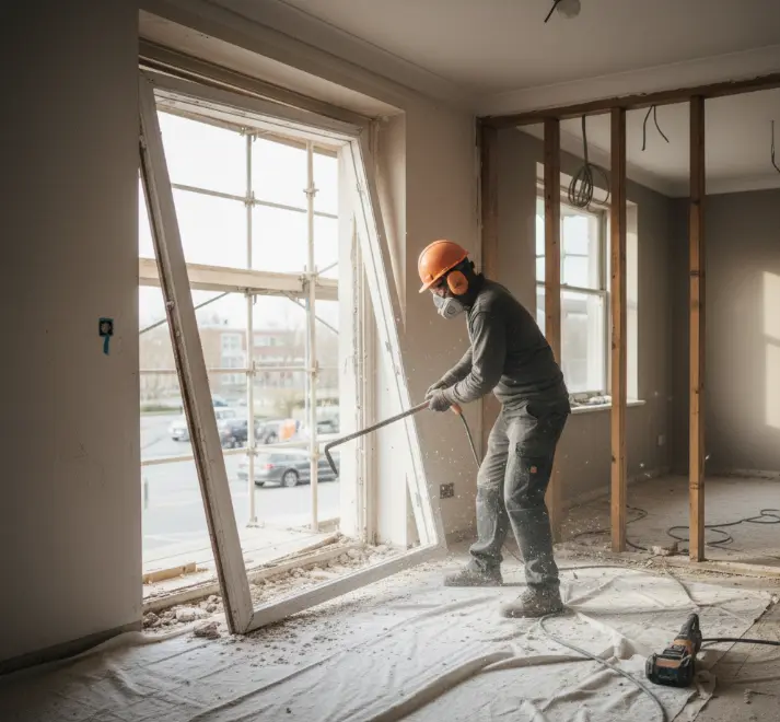 Услугата за къртене и демонтаж на дограма в София от “Бъмбълби Къртачи” е създадена, за да гарантира, че тази критична първа стъпка е изпълнена перфектно. Ние не просто “изкъртваме” старите рамки. Нашият екип подхожда с прецизност и внимание към детайла, като целта е да се запази максимално целостта на отвора. Използваме правилните инструменти и техники, за да отделим старата дограма от стената с минимални щети, след което почистваме основата до гладкост, готова за работата на монтажниците. С нас си осигурявате чиста, бърза и професионална работа.